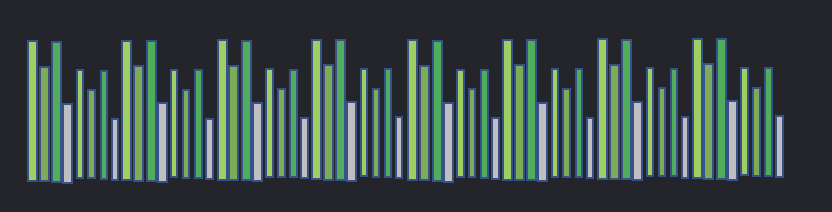 Jeder grüne Balken repräsentiert einen Tag, an dem Du Deinen CO2-Fußabdruck reduziert hast. Je höher der Balken, desto höher die absolute Einsparung in g/kWh, je dunkel-grüner desto größer die relative Einsparung in Prozent. Tage an denen Du keine Einsparung aufgezeichnet hast, sind grau hinterlegt und die Höhe gibt die mögliche Einsparung in g/kWh an.